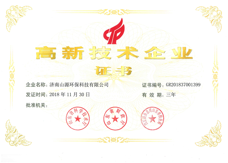 济南山源环保科技有限公司顺利通过ISO9001质量体系认证,环境体系认证,职业健康体系认证等。取得国家多项烟气余热、水处理、废水零排等技术研发专利。凭借专业的技术团队、强大的制造规模、丰富的工程实战经验,公司先后被评为高新技术企业、“守合同重信用企业”、“环境保护产业协会理事单位”,荣获节能先进企业”、环保行业“突出贡献企业”等荣誉称号。公司设有专业技术研发中心,并被认定为济南市市级“技术中心”,先后与中科院工程热物理研究所、西安交通大学、上海交通大学、东北电力大学、山东大学等高校合作,共同研究开发国内外节能减排新技术、新装备,并积极与多家国际公司技术合作不断引进国外先进技术和设备。